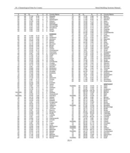 In this section, climatological data are tabulated by U.S. County. Use of the MBMA rainfall values is voluntary. The shorter recurrence intervals Metal Building Systems Manual IX. Climatological Data by County . 432 ... Document Viewer